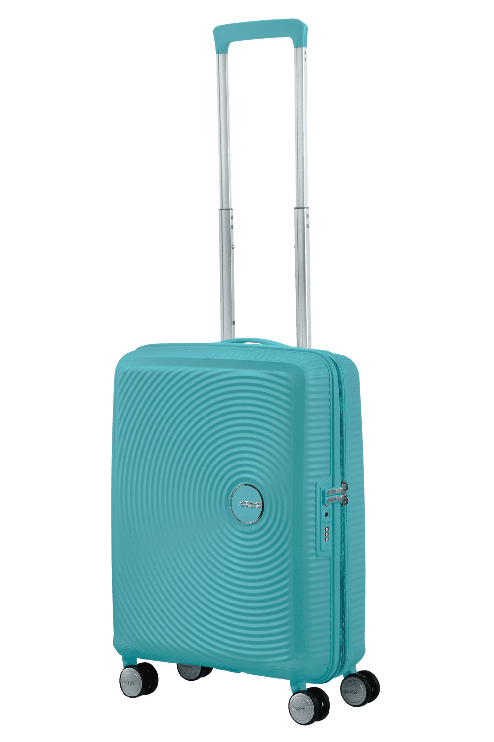 American Tourister Soundbox is a durable and lightweight hard-shell suitcase made from polypropylene, designed for travel. It features a distinctive concentric circle design inspired by vinyl records. The suitcase comes with four multi-direction spinner wheels for easy maneuverability, an expandable construction to increase packing capacity, a fixed combination lock with TSA functionality for security, and practical interior organization with straps and a divider. Soundbox is available in various sizes and colors and is backed by a limited 3-year global warranty.