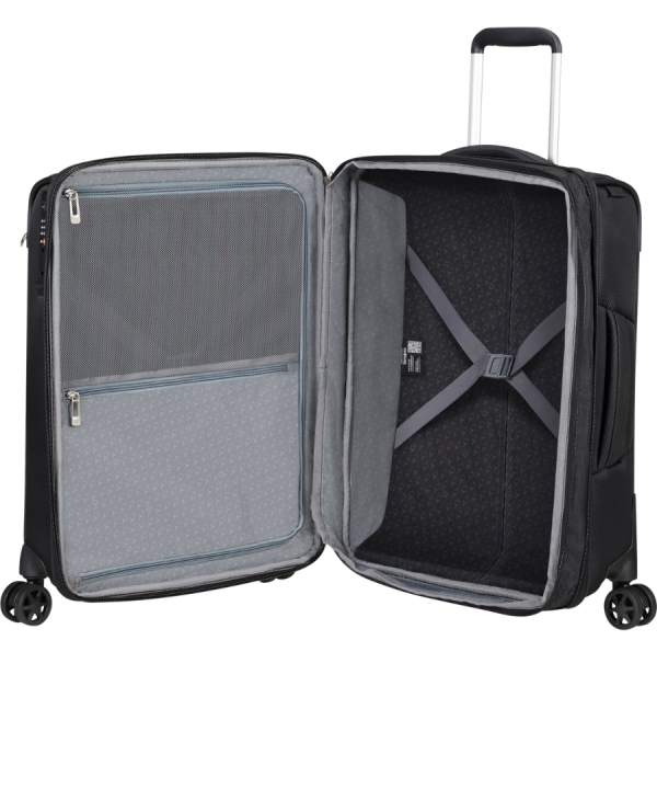 The suitcases and travel bags are made from recycled materials (including polyester made from recycled PET bottles), offering an eco-friendly alternative without compromising strength or functionality. The contemporary design is enhanced by practical details and well-organized interiors, making it ideal for both business trips and vacations.